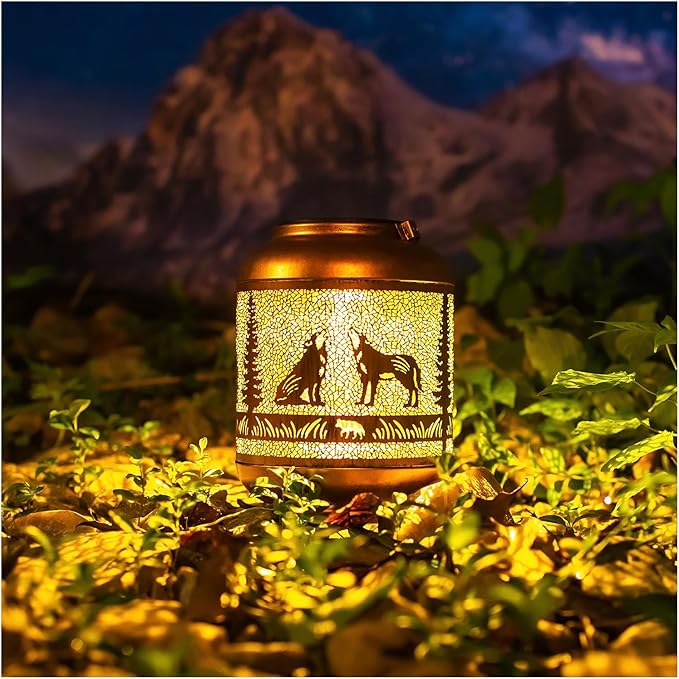 - Double the Glow for Your Garden! – Why settle for one when you can have two? With this 2-pack of Wolf Outdoor Solar Lanterns, you get double the beauty and charm. These lanterns project gorgeous, unique light patterns that create a warm, inviting atmosphere, adding fun and life to your outdoor space. The elegant hollow design and antique bronze color give them a stunning artistic look, perfect for decorating backyards, patios, pathways, tabletops, and more. Twice the lanterns, twice the style!