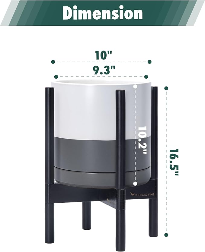 - 10 Inch Pot with Stand Set: Planter size: 10"Diameter x 10.2"H; pot with stand total height: 16.5 inch.