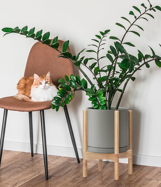 - A Complete Set: Mid-century ceramic planter, combined with a natural color, sculptural, solid wood stand that match perfectly together and looks great in anywhere.