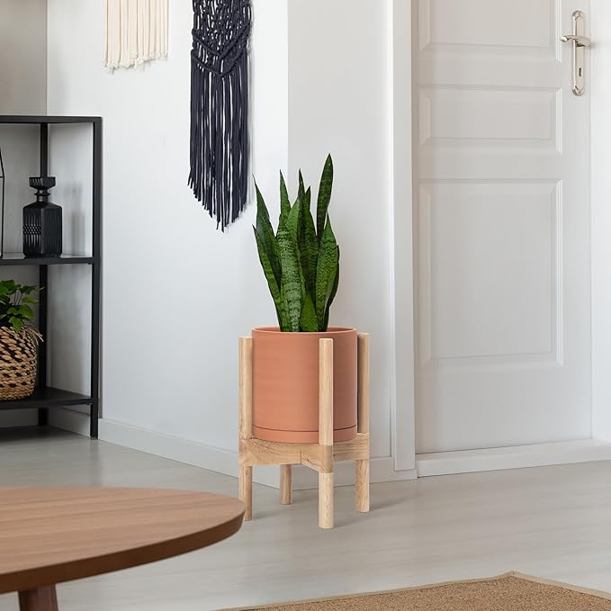 - A Complete Set: Mid-century terracotta planter, combined with a natural color, sculptural, solid wood stand that match perfectly together and looks great in anywhere.