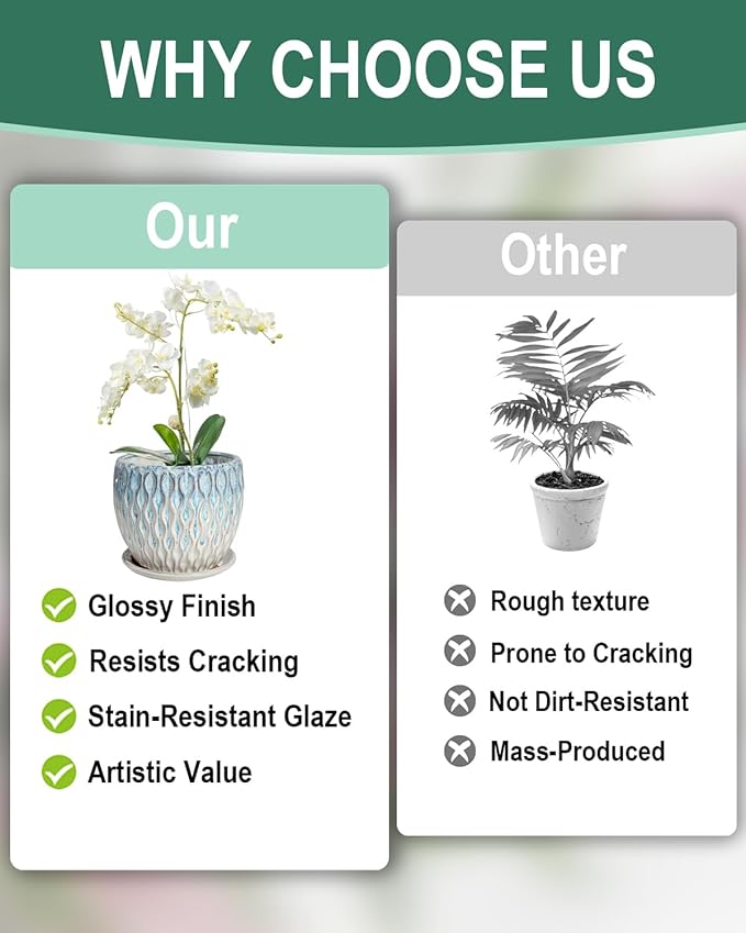- 【Drainage Hole and Saucer】This 7.5 inch ceramic orchid pot includes a built-in drainage hole and fixed saucer. It helps manage excess water and supports better growing conditions for orchids and indoor plants