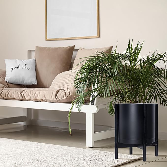 - A Complete Set: Minimalist plastic planter, combined with a sculptural, solid wood stand that match perfectly together and looks great in any home.
