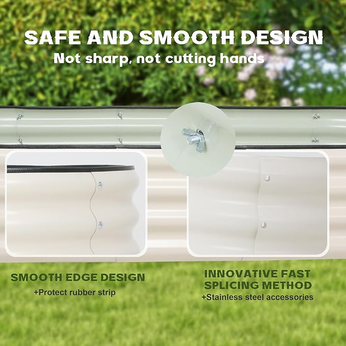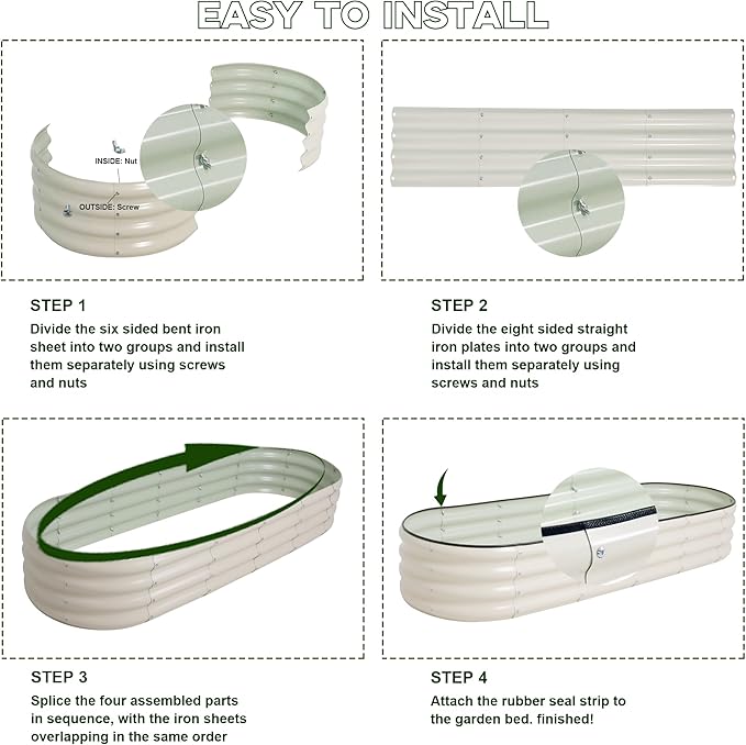- Durable Material: This robust and durable planter box is constructed from high-quality galvanized steel, featuring a wall thickness of 0.6 millimeters. The surface is treated with an anti-rust coating, while the overlapping sections achieve a maximum thickness of 1.2 millimeters. For your convenience, the product includes a screwdriver and gloves.The black rubber sealing edge not only effectively prevents hand injuries but also enhances both the stability and aesthetic appeal of the flower bed.
