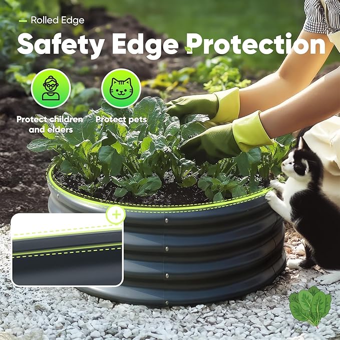 - 【Elevate Your Garden's Appeal】Beautify your yard, garden, greenhouse, or lawn with our round garden bed, featuring a sleek rounded outline. Ideal for planting vegetables, fruits, flowers, and herbs, it helps you create a dedicated area for strawberries, making your outdoor space both practical and attractive.