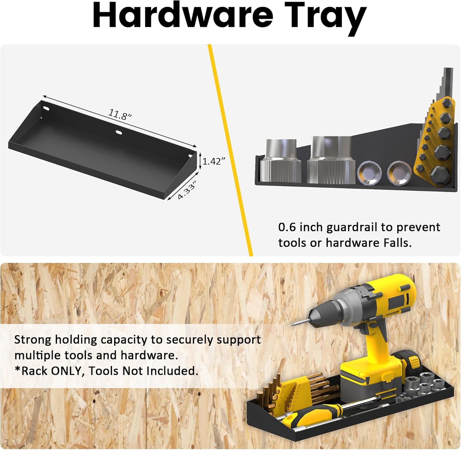 - Space Saving: The tool Utility Shelf can be mounted on a tool box, cart or wall, for the ultimate in convenience, storage and organization, keeps your workspace organized, decluttered and tidy, No knocking your small tools on the floor