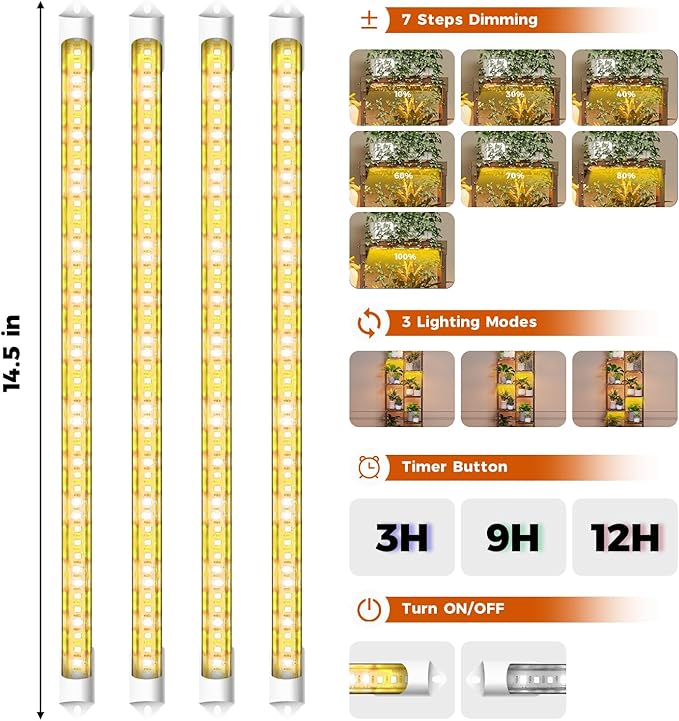 - Flower Stand with Grow Light: The plant light contains 3 supplemental light modes: 1. 48 leds warm white(3000k), only 3000k high uniform light ,like sunlight improve seeding growth ; 2. 48 leds Red (660nm): promote plant growth , flowering and fruit; 3. Red+ Warm White (380nm-780nm), Provide universal full spectrum which can meet the light conditions your plants need most in different stages.