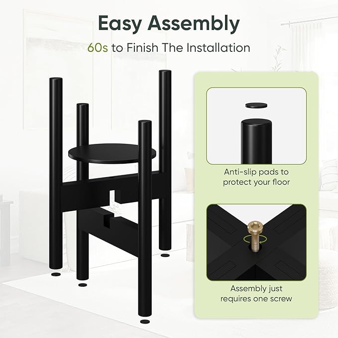 - Easy Assembly: No need to prepare complicated assembly tools, just combine the two H-shaped parts and the round tray, insert the screws and tighten them to get a flower pot stand. You can also attach non-slip mats included in the package to prevent the bamboo plant holder slipping and scratching your floor.