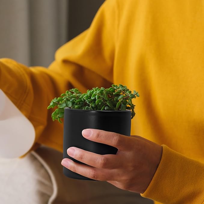 D'vine Dev Set of 2 Plants Pots, 3.5 Inch Ceramic Planter Pot for Plants with Drainage Hole and Saucer, Black, 94-V-A-2