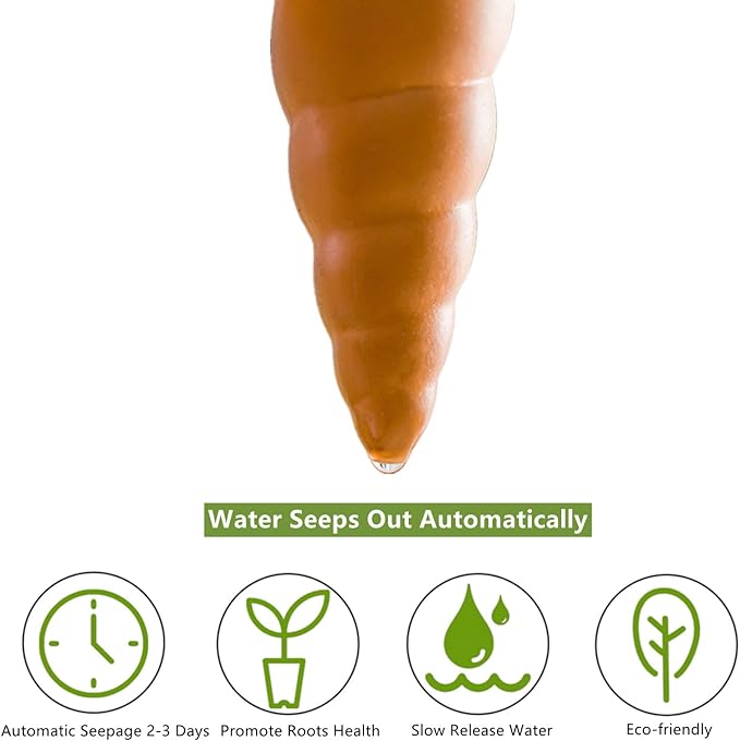 - Easy to Use: Soak the watering stakes for 10 minutes before use, then gently insert them into 3/4 of the wet soil and fill water through the hole of frog's head, it will automatically and slowly release water to your plant's roots for 2-3 days