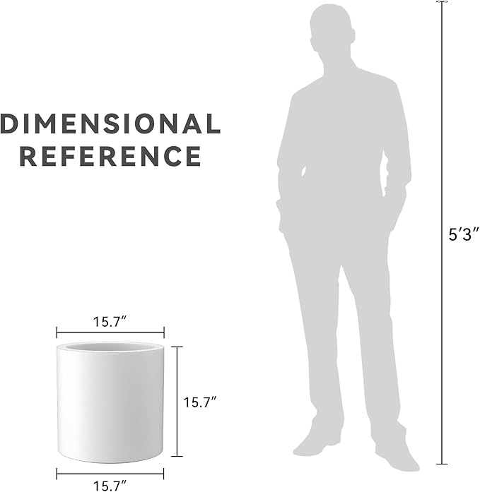 Kante 15.7" Dia Round Concrete Planter, Modern Style Large Cylindrical Plant Pot with Drainage Hole and Rubber Plug for Indoor Outdoor Patio, White
