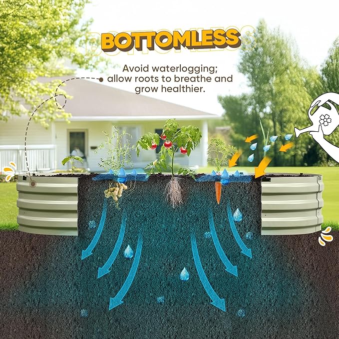 - 【Safe Rolled Edges】The edges of the metal raised garden beds are meticulously crafted with a rolled edge process, eliminating sharp edges to ensure your hands stay safe from cuts during assembly and planting, letting you safely enjoy the pleasure of gardening.