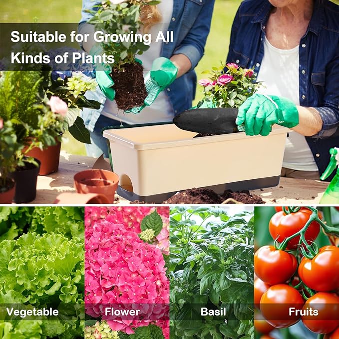 - 【Premium & Durable】The planter pots are made of high quality PP material and has been thickened to bear up to 300KG (660LB). This window box planter is sturdy, wear-resistant and durable. It can be exposed to light, wind, and sunlight for long periods of time, with a lifespan of decades. It is an excellent planter box for both indoor and outdoor.