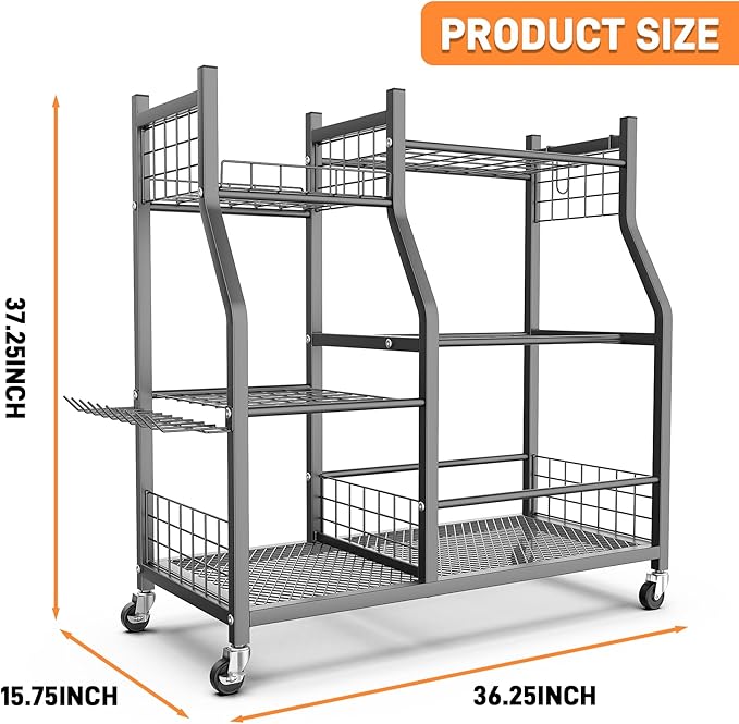 - Quick and Easy Tool Access: Perfect for garages, sheds, and gardens, this yard tools cart gives you access to tools from every side. Grab what you need without hassle and save time during your gardening projects