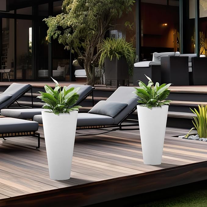 Kante Tall Round Planter Set of 2, 29 Inch Tall Decorative Planter Pots for Outdoor Indoor Garden Patio Front Porch (White)