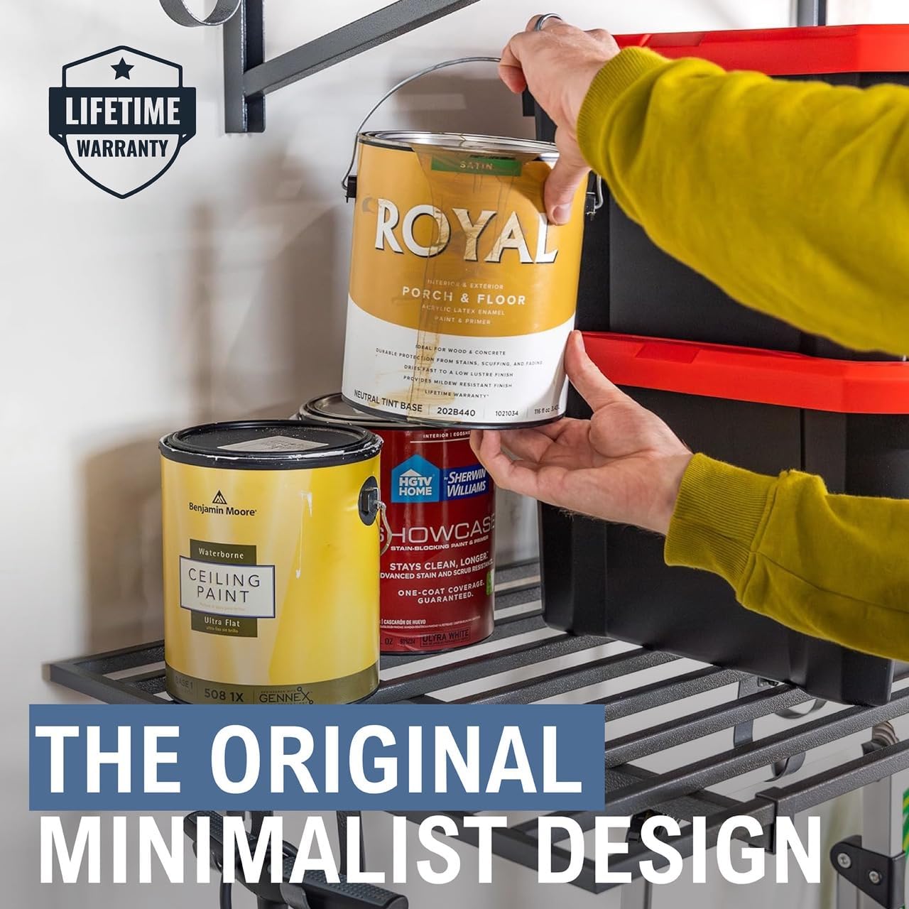 - STRONG STEEL BUILD – Crafted from alloy steel with a square tube frame, each shelf is engineered for strength and durability. These heavy duty storage shelves hold serious weight without flexing—ideal for use as garage wall shelving, utility shelving, or a metal rack system for long-term storage and organization.