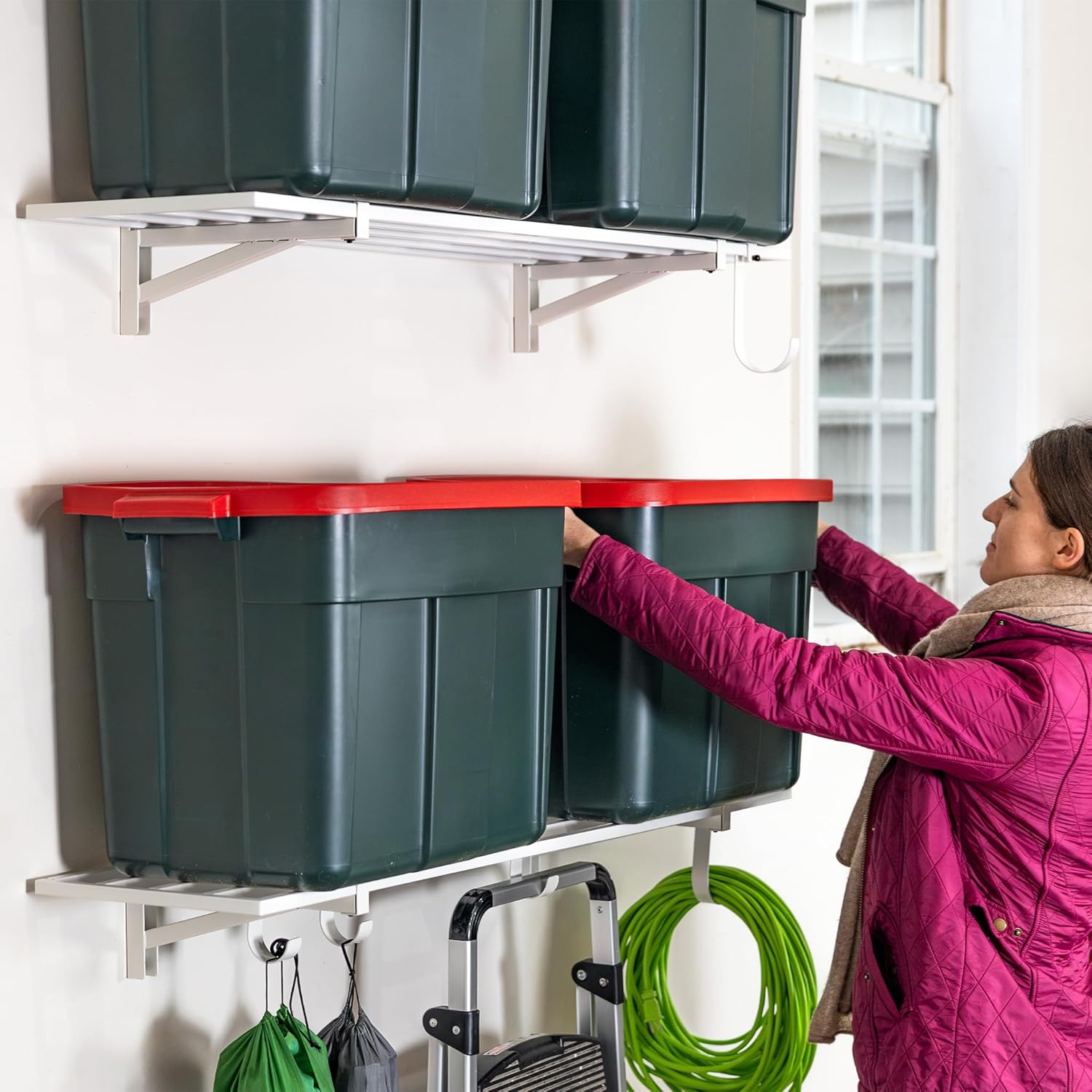 - HEAVY-DUTY STORAGE SHELVES – This 2-pack of wall-mounted garage shelves offers dependable, space-saving storage for any setup. Available in a range of sizes to suit your space, each shelf supports up to 200 lbs—ideal for storing bins, tools, tires, and gear. A solid pick for maximizing wall shelves in your garage, shed, or utility room.