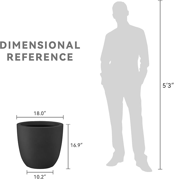 Kante 18 Inch Dia Round Concrete Planter, Indoor Outdoor Large Plant Pot with Drainage Hole and Rubber Plug for Home Patio Garden, Black