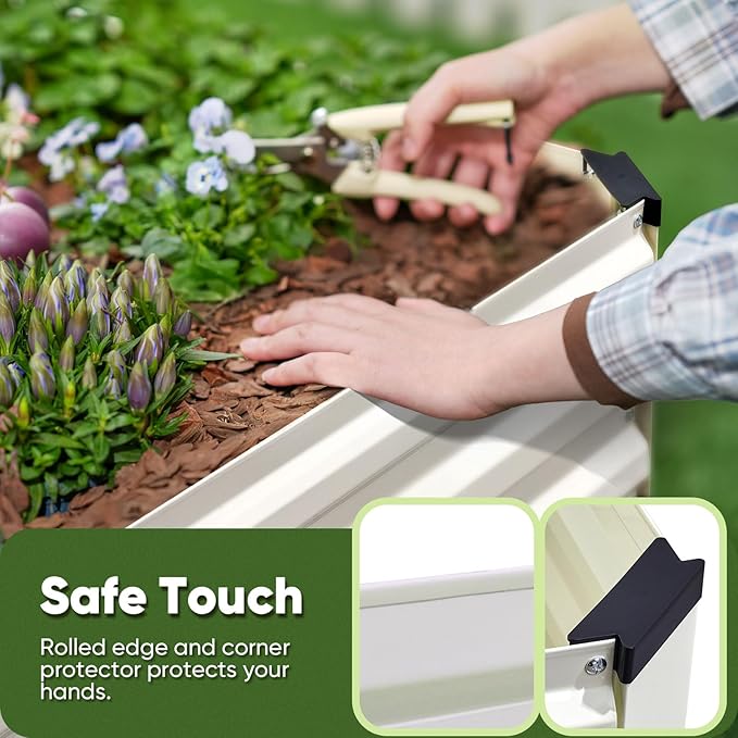 - 【Safe Rolled Edges & Corner Guards】Our raised planter box features rolled edges and corner guards that eliminate sharp protrusions, ensure your hands are not cut during assembly and planting - a critical upgrade parents and pet owners appreciate.