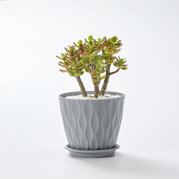 - 【Stylish 6-Piece Pot Set】This exquisite set includes six durable 6-inch flower pots, each with a matching drip tray, perfect for crafting cohesive herb gardens, vibrant succulent displays, or lush indoor arrangements. Featuring a unique 3D Wave Texture Design, these planters beautifully enhance the natural beauty of your greenery.