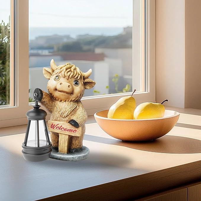 - Highland Cow Statues with Solar Lights, Highland Cow Resin Figurine Lights, Highland Cow Ornaments for Patio, Balcony, Indoor Decoration and as Gifts