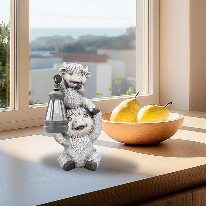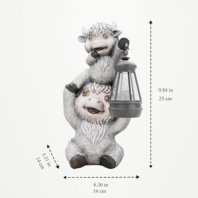 - Wide Application: Highland Cow Outdoor Solar Figurine Lights have a wide range of applicability; you can place them in your front yards, lawns, patios, porches, front steps, balconies, flower beds, stairs, poolside, potted plants, windowsills, or indoors as ornaments.
