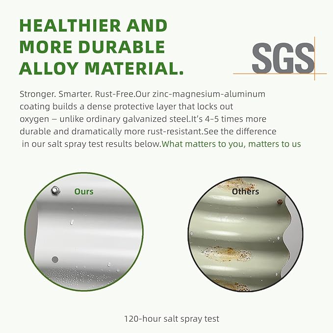- Sturdy and Durable Materials: Made from high-quality zinc-magnesium aluminum alloy steel, this raised flower bed is built to withstand the elements while providing a secure environment for your plants to thrive. With a remarkable lifespan of over 30 years, this garden bed is built to withstand the test of time.