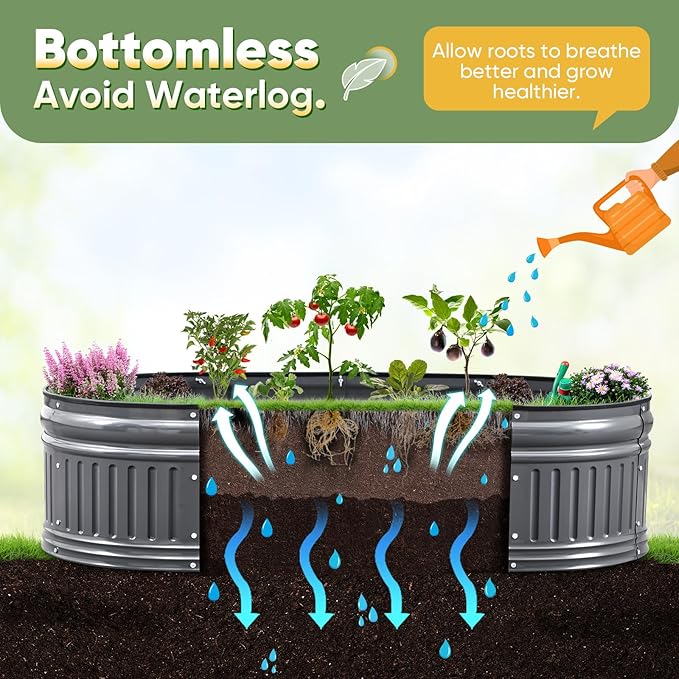 - 【Rubber Strip Edging, Open Bottom】Our garden beds come with rubber edging to prevent cuts during installation or planting, making it safe to use around pets and children. The open base design prevents water accumulation and rot, allowing roots to breathe better and providing a healthy environment for plant roots.