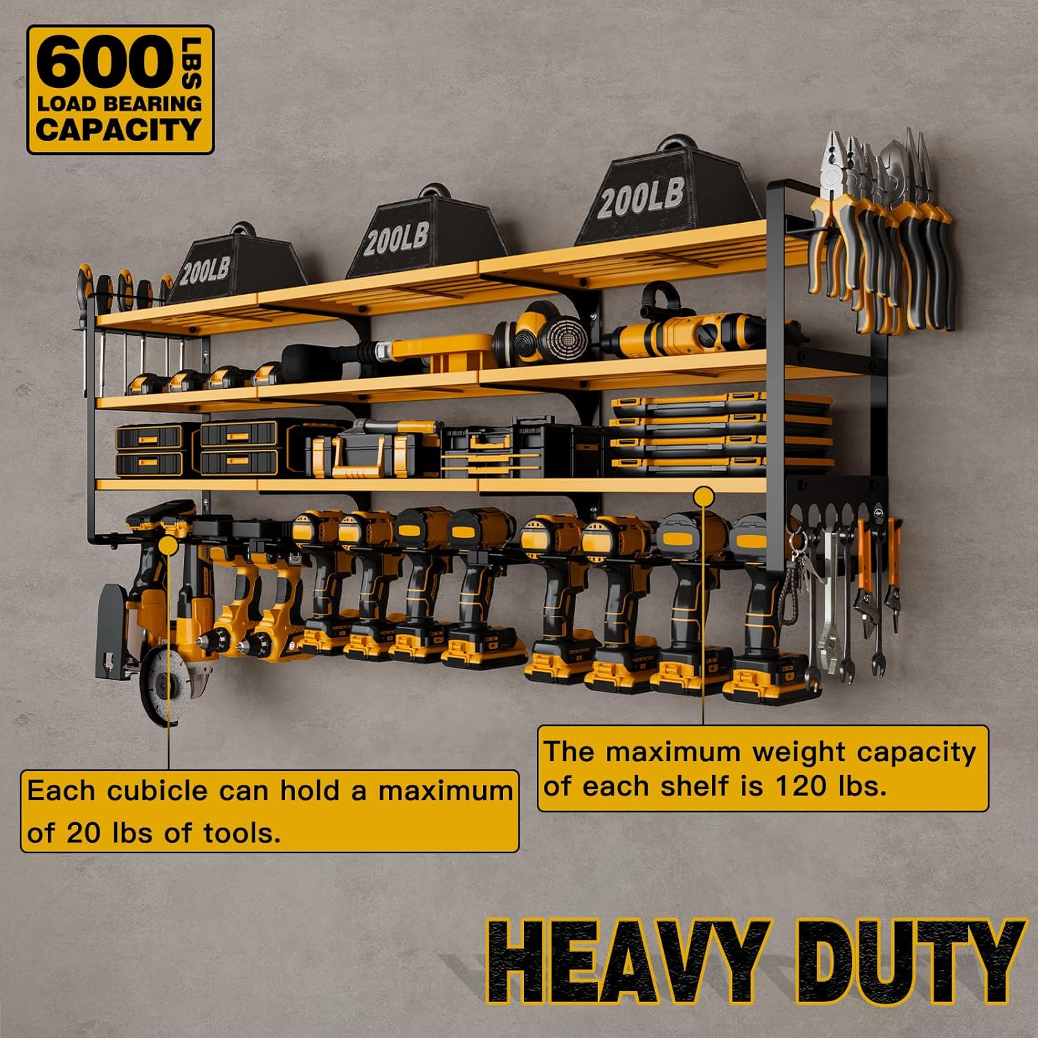 - Robust Weight Capacity: This tool rack ensures that you can store your tools securely without fear of them falling. Its sturdy construction guarantees reliability, making it a safe choice for heavy-duty storage needs
