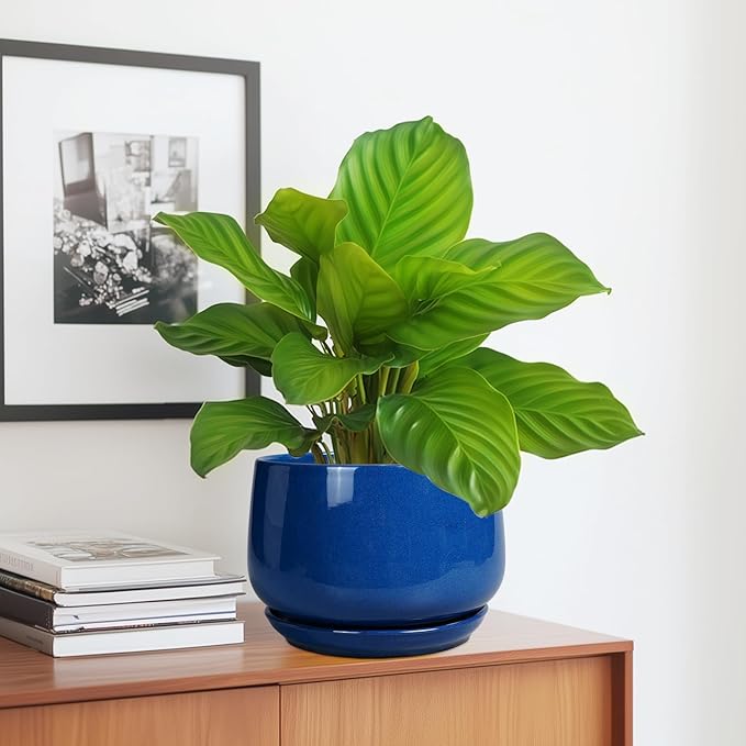- Dimensions: These ceramic planters pit measures 7.28" x 7.28" x 5.39". Blue planter is an ideal choice for growing snake plant, money tree, geranium plant, peace lily, monstera deliciosa, succulents, cacti, aloe vera, orchids, african violet, bonsai tree and other indoor & outdoor plants