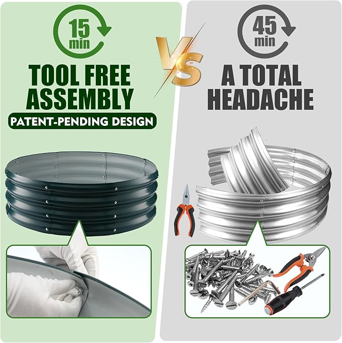 - Durable Construction: The XGMDD Round Metal Raised Garden Bed is crafted from sturdy, painted metal in 0.7mm thick, ensuring long-lasting durability and resistance to weather elements, perfect for outdoor use.