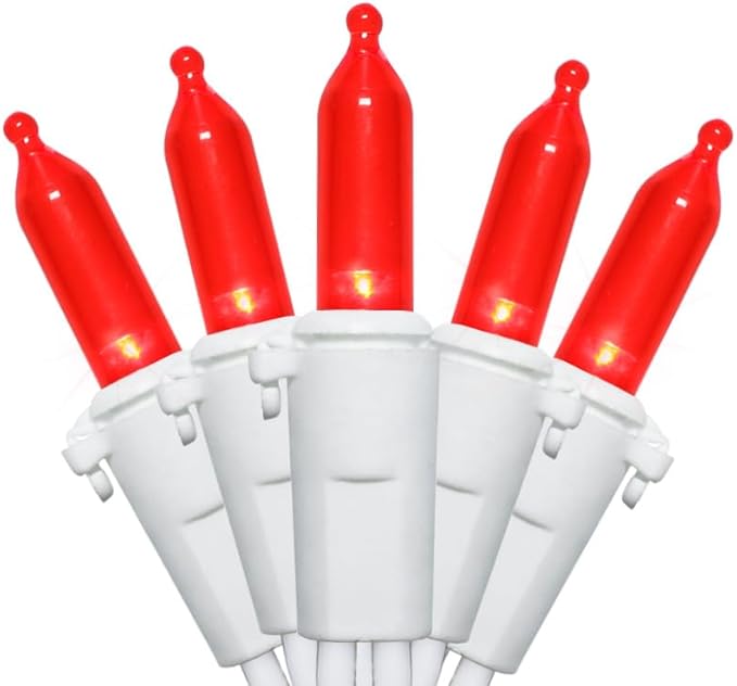 - 【Mini Christmas Lights Specification】: 2 Sets - white wire chritsmas light string includes 100 count red LED lights, total length 35.3ft, lights length 33ft and each led is 4 inches apart, 24 inches lead wire, 4 inches end connector (Extra 2 x bulbs and 1 x fuse included)