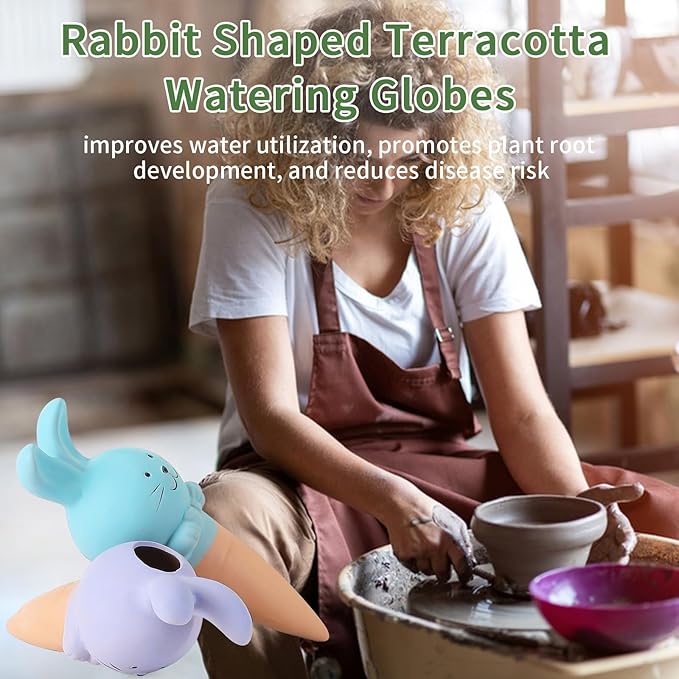 - Elegant Design: The plant watering globes with cute rabbit design, serving as perfect indoor and outdoor plant accessories. This self watering spikes not only makes plant care fun and effortless but also saves you time and effort.