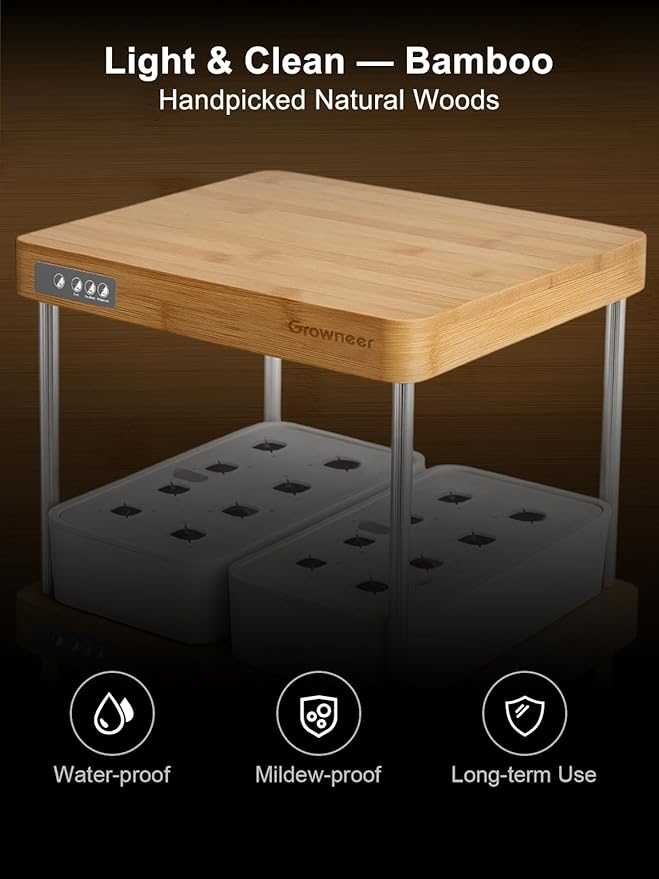 GROWNEER HydroEasy1.0 Hydroponics Growing System Kit, Beginner-Friendly Indoor Garden for Vegetable Fruit Herb, Bamboo Design, Perfect Gift Idea, Full-Spectrum LED Lights for Maximum Growth