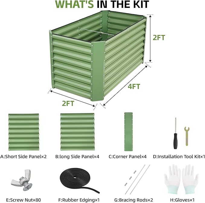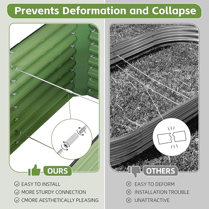 - 【 Superior Durability 】Made of 0.7mm thick zinc-coated steel with spray coating, our raised garden bed resists rust, corrosion, and deformation for 5x longer lifespan than thin competitors. Dual-folded edges ensure galvanized garden bed structural stability even in harsh weather.