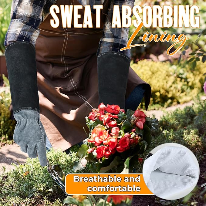 - Forearm Protection & Snug Fit: Feature cowhide leather long sleeves that extend up to forearms that protect them from cuts and scratches, keeping your hands and forearms safe and comfortable. Elastic wrist closure offers a snug and comfortable fit to keep the gloves securely on your hands. Perfect for tasks that require reaching into dense foliage or handling thorny plants