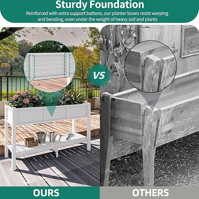 YITAHOME Raised Garden Bed, 47x18x31 Inch HIPS Poly-Wood Weather-Resistant Elevated Planter Box with Storage Shelf for Vegetable Flower, White