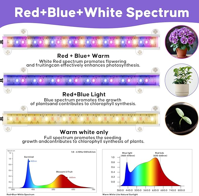 - 【Multi-function Plant Grow Lights】The plant stand indoor comes with 3 strips of plant grow lights, you can adjust the installation position of the lights as you like. The plant lights have 3 spectral modes, 3 bright modes, 10 brightness adjustments and a timer function to meet the light conditions that plants need most at different stages, and promote the healthy growth of indoor plants.