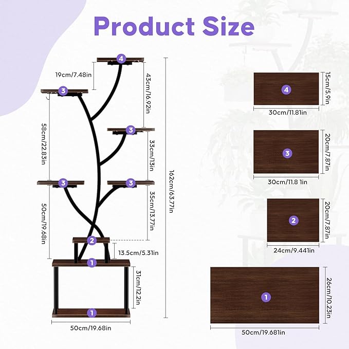 - 【Modern & Elegant Decor】 This tall corner plant stand features a graceful branching design that resembles a “tree and branch”, which can hold a variety of indoor plants. It is a beautiful and creative present adding a touch of nature and elegance to living room, bedroom, porch, etc. Ideal for plant enthusiasts, it brings the joy of gardening indoors, making it a unique and enduring present for various holidays.