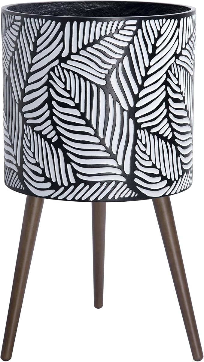 D'vine Dev 16 Inch Planter Pot with Stand, Mid-Century Tall Plant Pot with Legs for Indoor Plants, XX-Large, White/Grey, 88-L-E-7