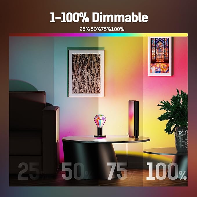- 【Customizable Ambiance with Dimmable Brightness】 Create the perfect vibe for any occasion! Adjust the brightness to suit your mood—bright for game nights, soft for movie marathons, and everything in between. Your lighting, your way.