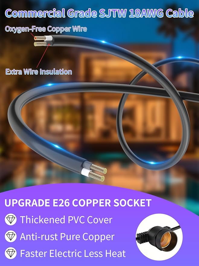 - WIDELY USE:LED cafe lights string are the perfect decoration for balcony,patio,garden,porches,pergola,gazebo,deck,tent,umbrella,party,dinner,wedding,christmas and more.Enjoy more illumination or festive flair for any indoor & outdoor space