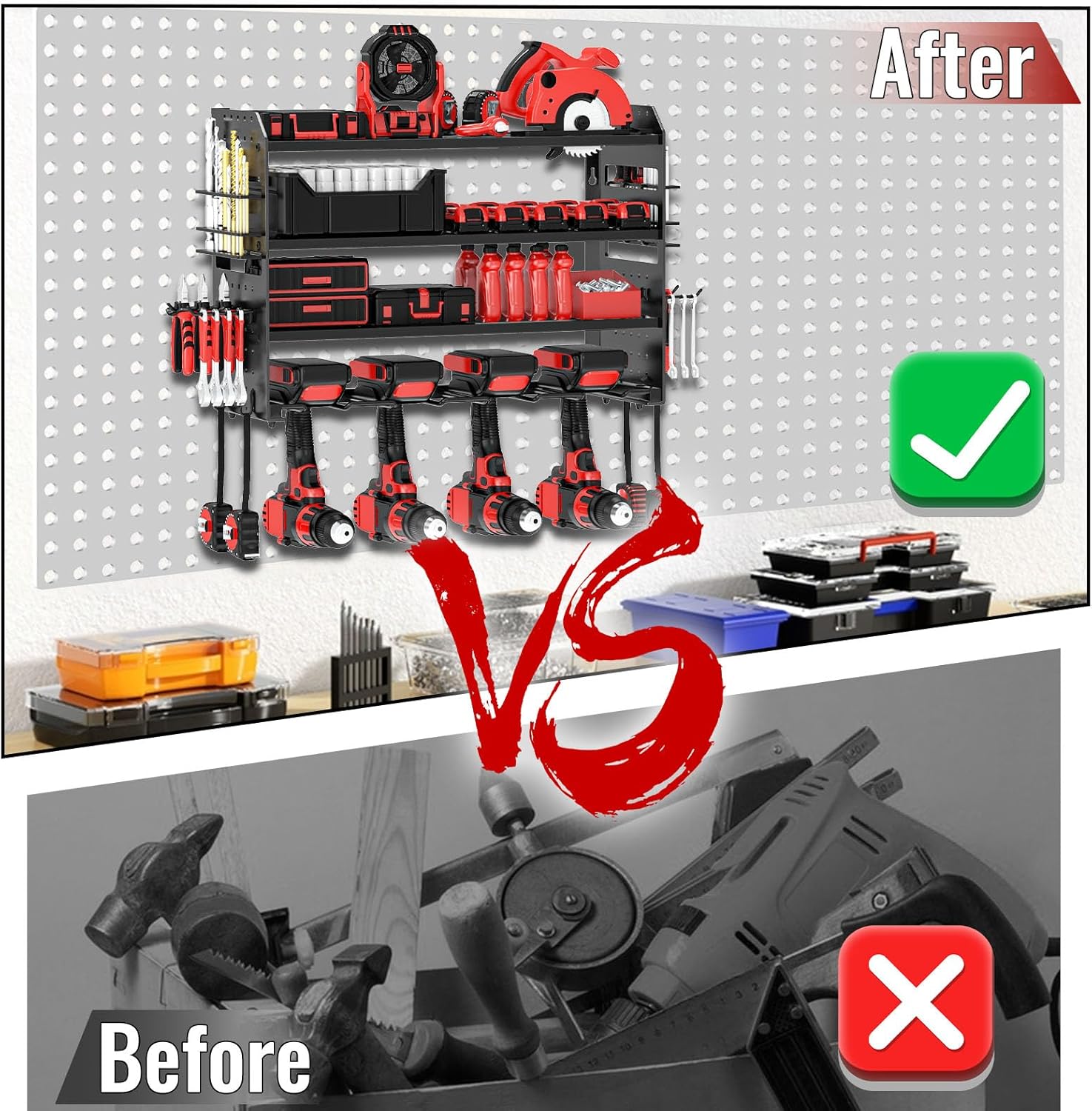 - 【Easy to Install】The garage storage shelves are removable design, refer to the installation manual, you can assemble a perfect cordless drill rack and tool shelf in just a few minutes.The installation is really straightforward and it's the perfect solution!