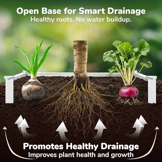 - SAFE, ECO-FRIENDLY GARDENING: Made from non-toxic, BPA-free plastic, this raised bed is 100% recyclable, offering a sustainable option for growing your herbs, vegetables, and flowers. Enjoy peace of mind knowing your garden is safe for both plants and the planet.