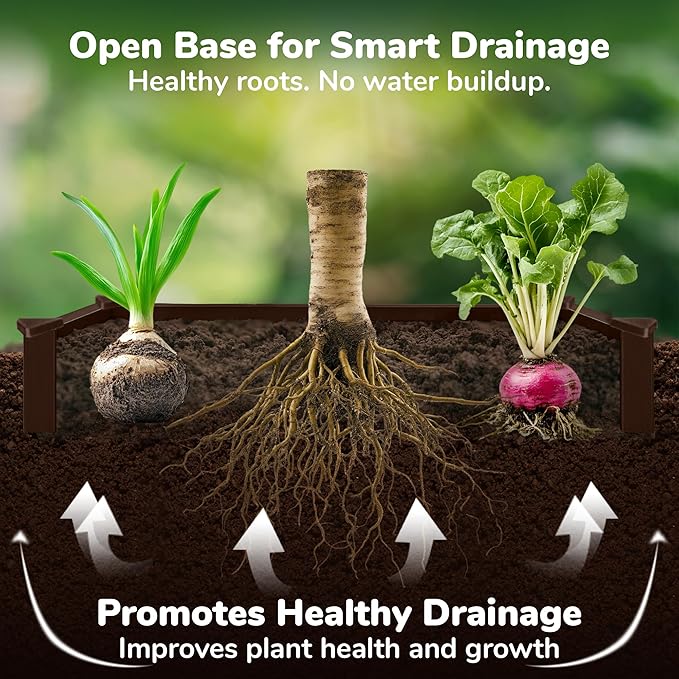 - SAFE, ECO-FRIENDLY GARDENING: Made from non-toxic, BPA-free plastic, this raised bed is 100% recyclable, offering a sustainable option for growing your herbs, vegetables, and flowers. Enjoy peace of mind knowing your garden is safe for both plants and the planet.