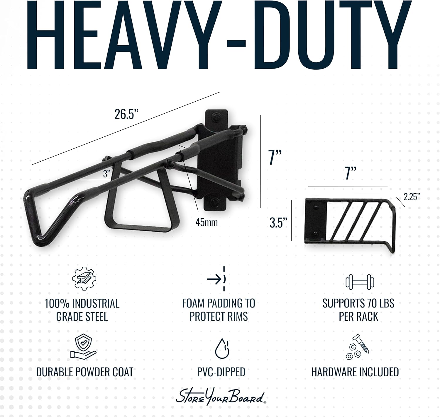 - Heavy-Duty Steel Construction: Built from industrial-grade steel with no plastic parts for durable bike organization. Each bike hanger wall mount supports up to 70 lbs, making it robust enough to store your most valuable bikes, including road bikes, gravel bikes, and e-bikes.