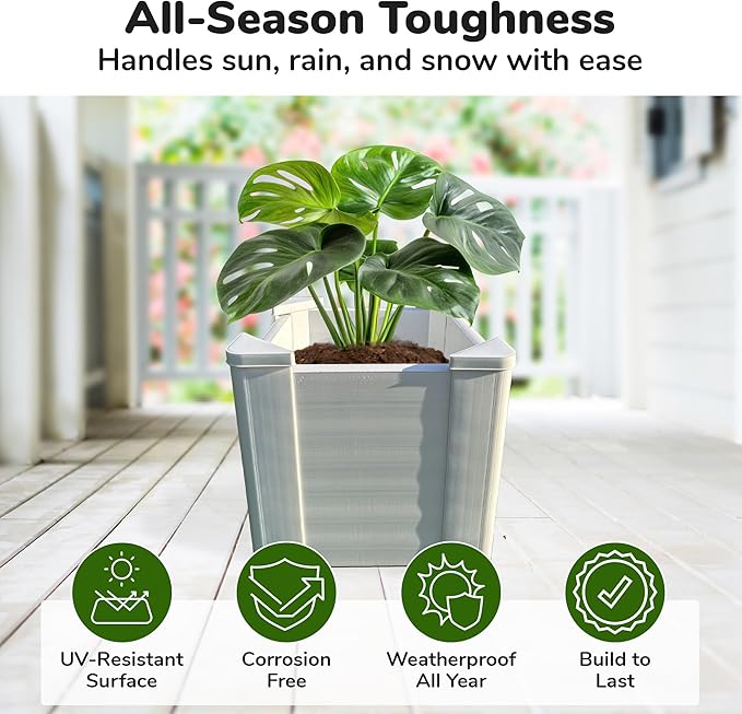 - DURABLE & WEATHER-RESISTANT DESIGN: Constructed from heavy-duty HDPE plastic, this raised garden bed resists warping, cracking, and rotting, offering season-long durability. No rusting, no splinters, and no painting—just dependable outdoor gardening season after season.