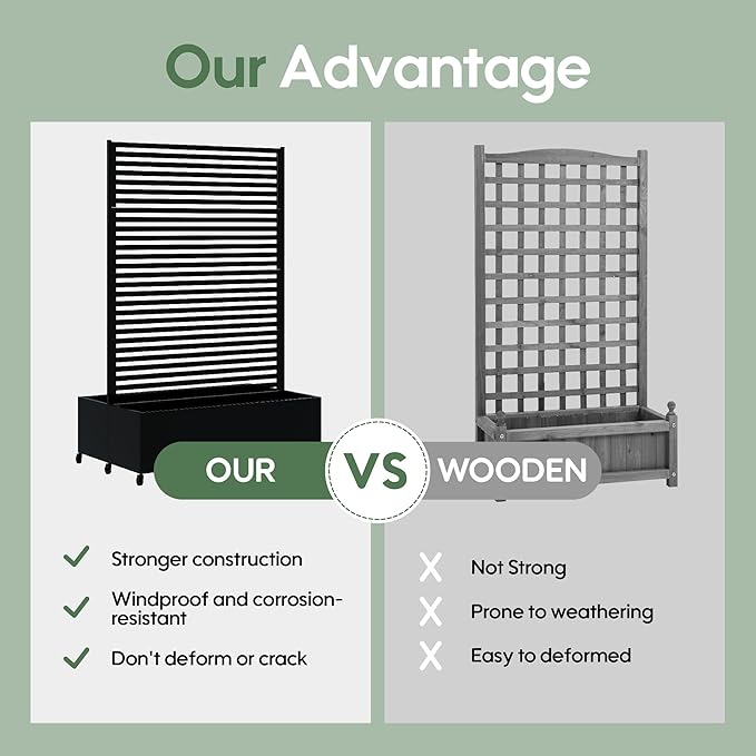 - Versatile Design--This metal planter with trellis serves triple purposes as an elevated garden bed for flowers/plants, a sturdy trellis for climbing flora, or a stylish privacy screen to enhance outdoor living spaces. Its adaptable structure makes it the ultimate gardening solution for diverse needs.