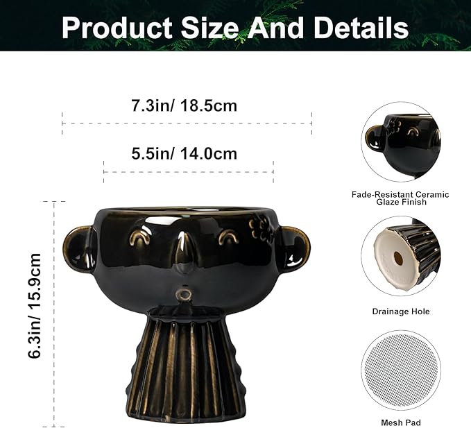 - Package Includes: One ceramic plant pot (including both ears) with a width of 5.3 inches and a height of 6.3 inches, and a mesh is 6 cm. Plants Not Included