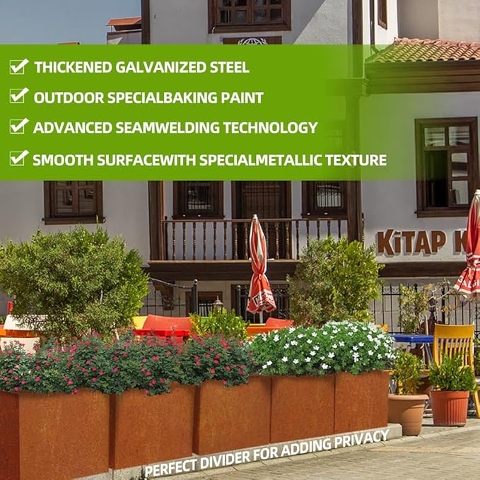 Metal Tall Long Planter Box Large Rectangular Planter Flower Pot with Drainage Holes for Indoor Outdoor Deck Porch Garden Home Patio Front Door (Rusty Orange, M)