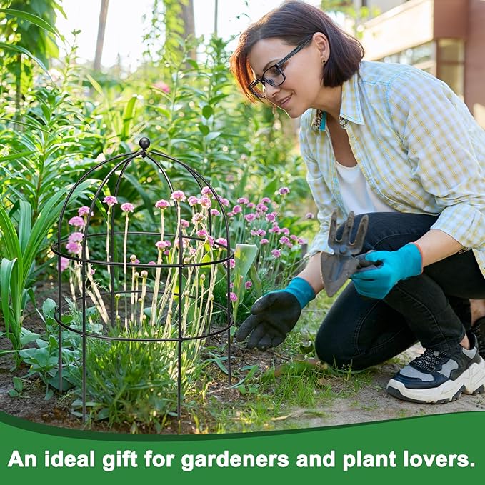 - Elegant Design: A beautiful birdcage design enhances your garden's aesthetic while functioning as a sturdy grow-through support that keeps plants contained and upright. This sculptural plant support maintains the shape of large perennials, complementing the elegance of your flower gardens.